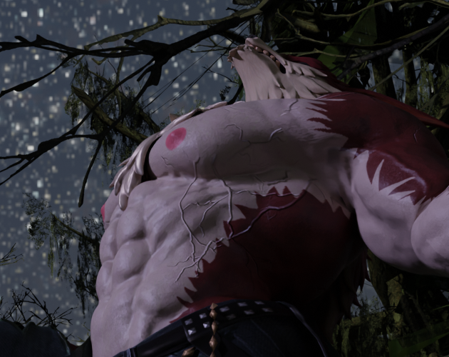 After selecting Lycan, click the red spherical icon that's under the green triangular icon which will lead you into the materials. Click on the "Torso-2", "Arms-2", and "Legs-2" materials to find and remove (if you want to) the normals of each material. Hope this helps!